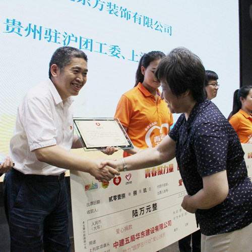 8月9日下午,由上海市合作交流团工委、市慈善基金会、上海青年志愿者协会主办的“青春聚力量 圆梦在行动”扶贫公益活动启动仪式成功举行。中建五局华东公司捐款六万元用来支持这次公益活动。