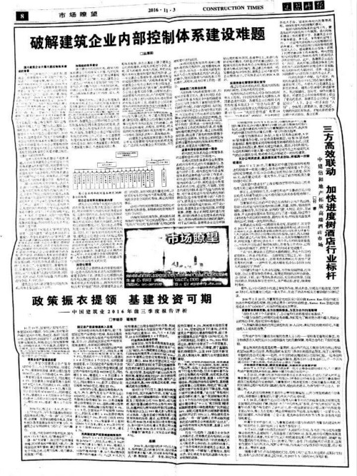 近日,《建筑时报》第3369期市场瞭望栏目以“三方高效联动,加快进度树酒店行业标杆”为题对中建信和地产正在施工的中建万怡酒店进展情况进行大篇幅报道。