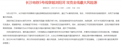 人民网报道长沙地铁5号线成功攻克全线最重大风险源