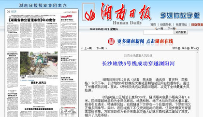 4.湖南日报:长沙地铁5号线成功穿越浏阳河