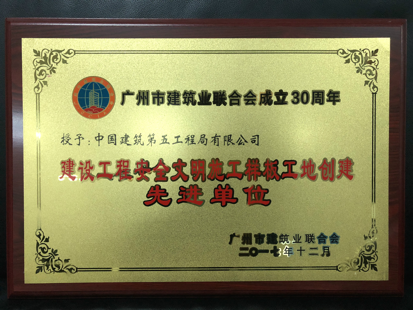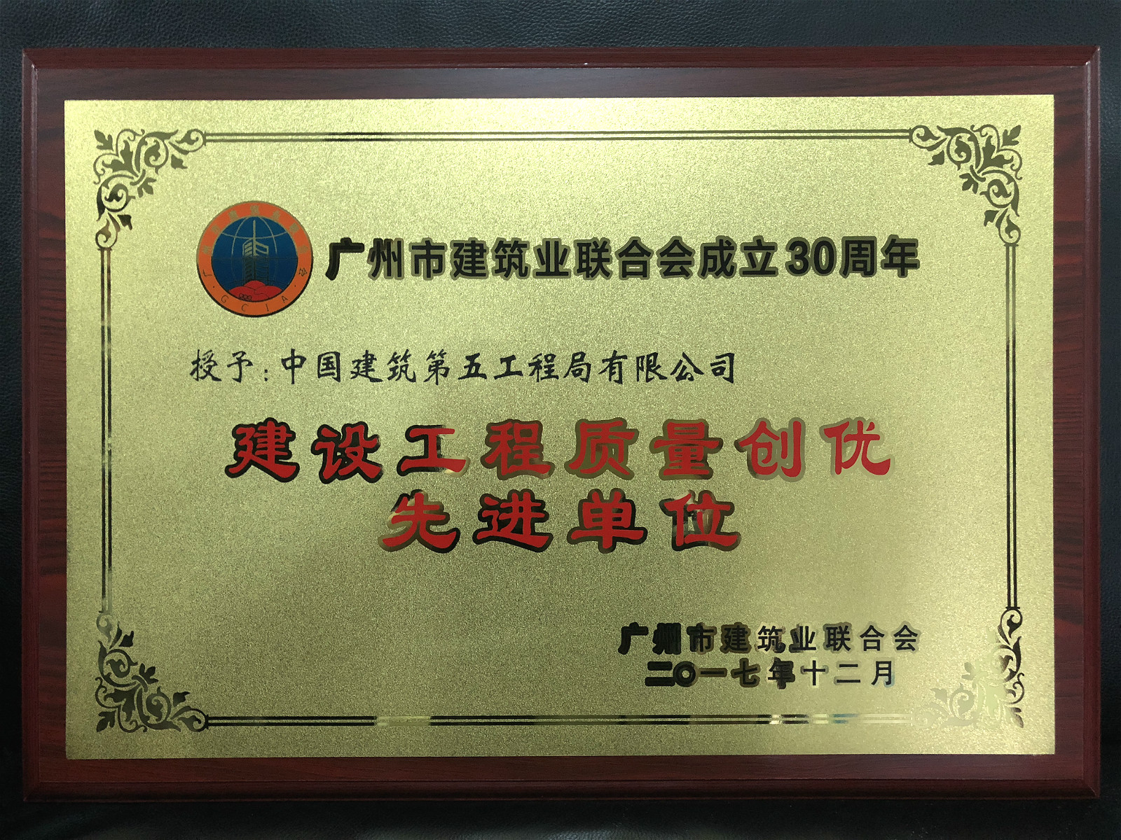 中建五局获广州市建筑业联合会“优秀建筑企业”等五项荣誉