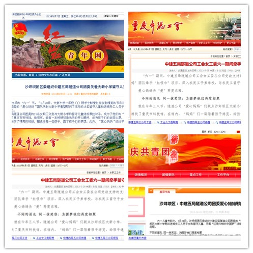 重庆青年报、重庆市总工会、团市委官网等报道隧道公司六一善举