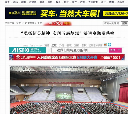 7月25日,红网报道五局“弘扬超英精神实现五局梦想”演讲比赛,和讯新闻等网站等进行了转载。(靳晴)