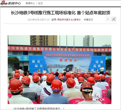 6月18日,土木公司长沙地铁13标项目承办长沙轨道交通集团安全文明现场标准化推进会。中建五局标化管理亮点频频,引来业主和其他标段承建单位的赞扬。同时多家媒体报道了长沙地铁3号线13标项目承办标化推进会暨安全生产月启动会。