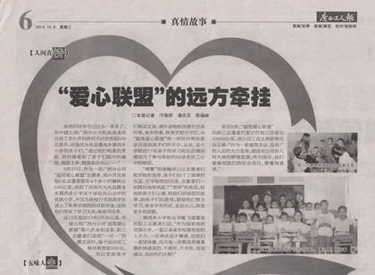 前后8次,“超英爱心基金”的职工志愿者们累计行程已经将近10000公里。该公司工会主席舒燕告诉记者:“作为一家建筑企业,没有广西人民的大力支持,就没有公司在八桂大地的辉煌发展。作为国企,我们要展现我们的社会责任,要懂得感恩。”