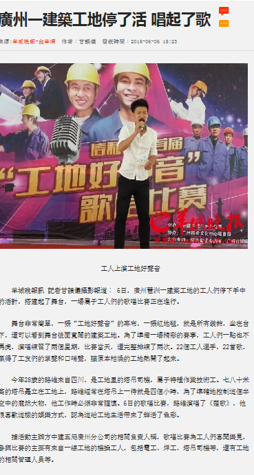 多家媒体报道广州分公司“工地好声音”歌唱比赛
