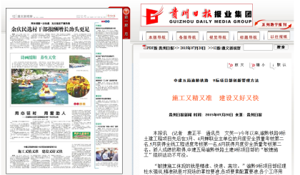 7月20日,《贵州日报》再次聚焦渝黔铁路施工,对隧道公司渝黔铁路项目敏捷施工渝黔铁路情况进行报道。
