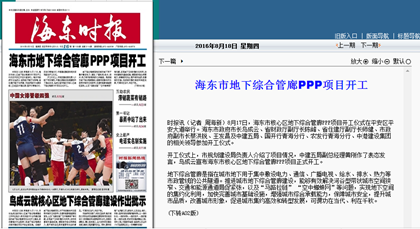 隧道公司海东市核心区地下综合管廊PPP项目举行了隆重的开工仪式,多家主流媒体进行了跟踪报道。海东市广播电视台《新闻频道》进行了专题报道,《海东时报》头版报道,《青海省人民政府》、《青海新闻网》、《青海频道--人民网》、《海东新闻网》、《中国水泥网》转载报道。