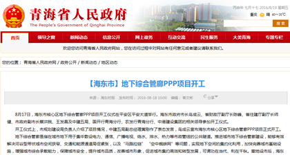 青海省海东市地下综合管廊项目本次招标全长56.4公里,分2016-2017两年建设完成,综合投资34.4亿元,管廊建安投资24.4亿元,其中五局占投资额约70%,海东市政府占投资额20%,中港集团占投资额约10%.