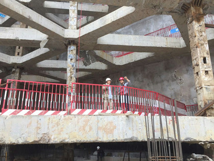 在采访中记者了解到,彭城广场换乘车站现已完成了地铁2号线的主体结构的封顶。“本站二号线的封顶是徐州轨道交通全线第一座盖挖车站及第一座换乘车站正式封顶。”
