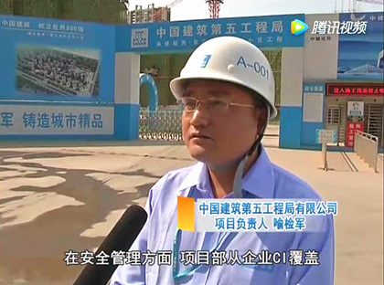 在烟台电视台《讲纪说法》节目中,大篇幅的对山东公司越秀项目的安全体验区、样板展示区、工人生活区、降尘措施自动喷淋、洗车台、场区CI覆盖以及现场实体安全文明生产情况做了报道。在采访中,喻检军指出:项目在安全管理方面项目部从CI覆盖、现场防护到安全文明施工,严格按照中国建筑总公司的标准化执行,另外项目还专门设立了安全体验区、样板展示区以及大门门禁人脸识别系统,并定期组织工人进行安全教育工作。