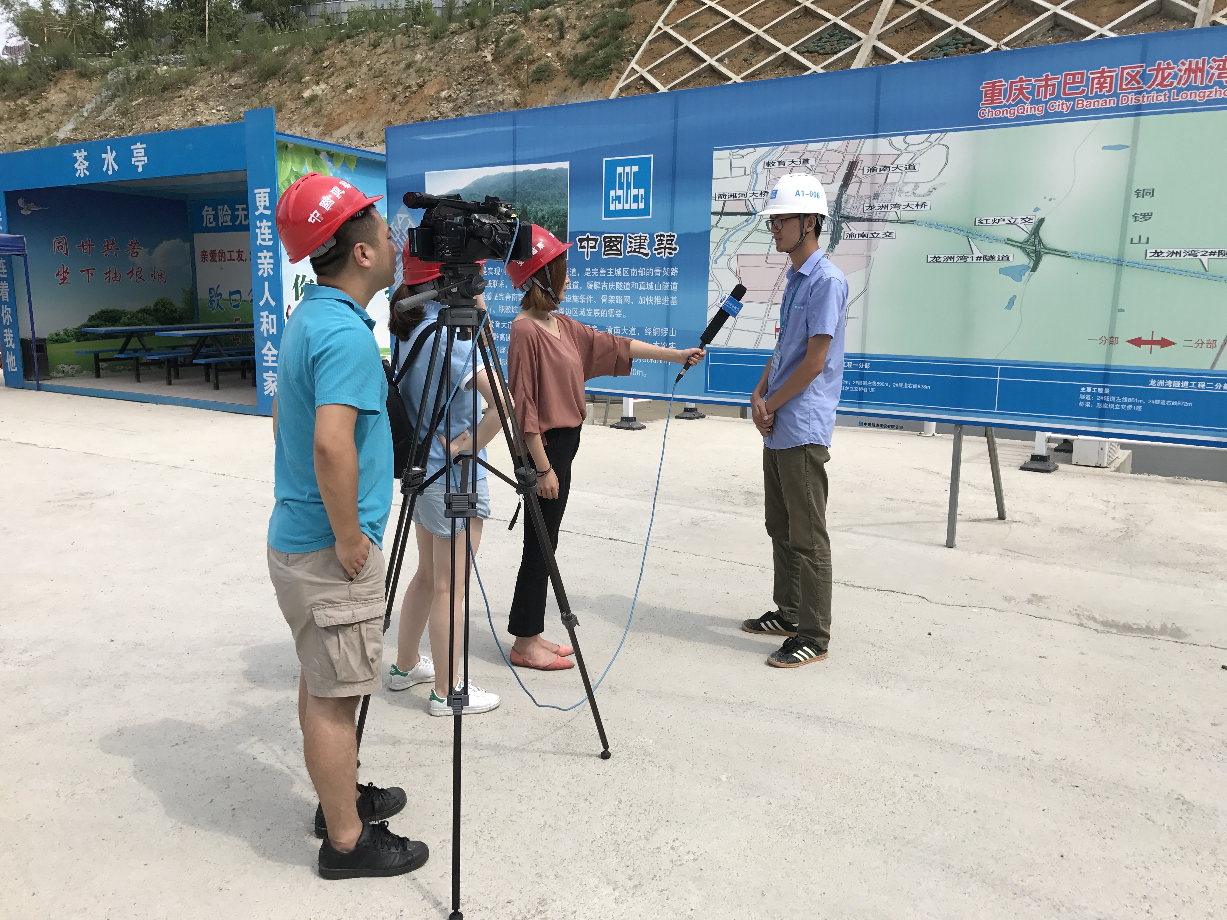 8月16日,重庆市巴南区电视台记者来到中建五局投资建设的重庆龙洲湾隧道项目,对现场施工进度进行实时报道。