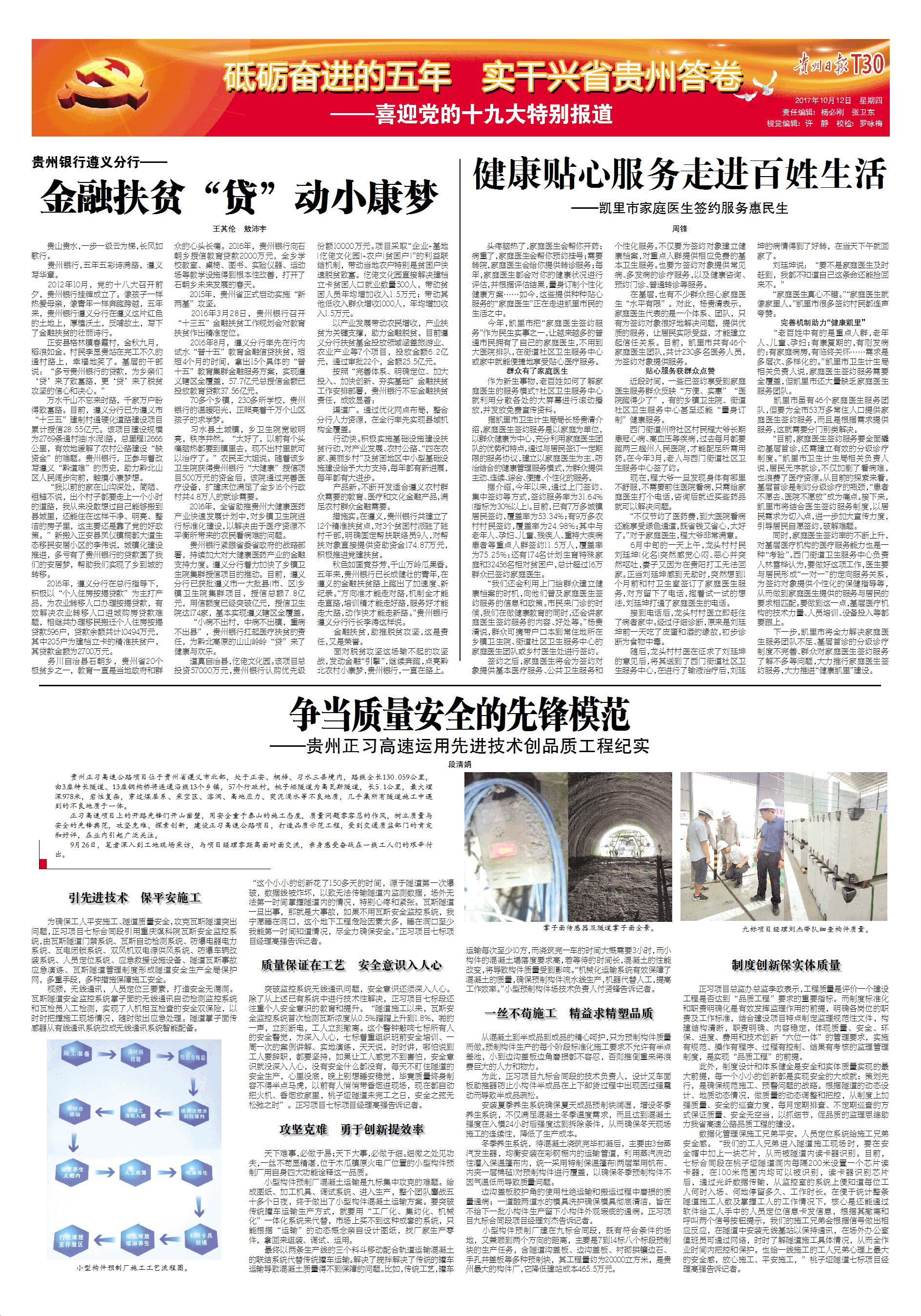 10月12日,一篇名为“争做质量安全的先锋模范——贵州正习高速运用先进技术创品质工程纪实”的文章在贵州日报喜“喜迎十九大”别报道版面刊登