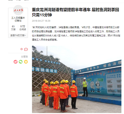 近日,巴南日报、工人日报等多家媒体深入报道中建建隧道龙洲湾隧道项目工程。
