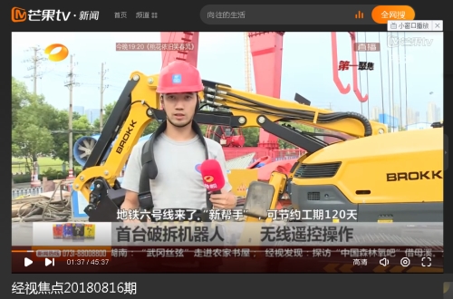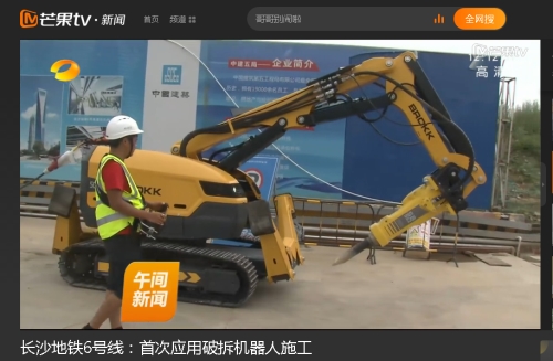 湖南卫视、湖南经视连续报道中建长沙地铁6号线二标六项目BROKK破拆机器人