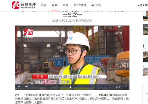 近日,长沙新闻频道专题报道了长沙地铁6号线第六项目部引进BROKK-800型自走式遥控破拆机器人,这也是该项目部引进的第二台BROKK机器人,但它的体型更大、功能更强,施工效率也提升了三分之一。