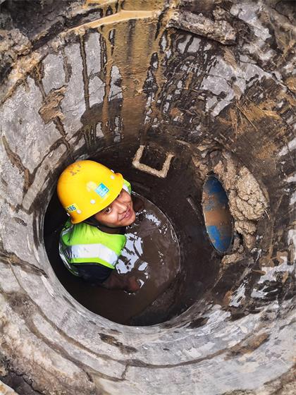 五一劳动节当天,暴雨过后的泥沙堵住了项目雨水井,“终于疏通了……”,5月1日,中国建筑中建隧道深圳地铁13号线项目的马本常,从刚刚疏通的雨水井口开心地“钻”出来,除了脸,全身都被黑泥糊住了。今年19岁的小马来自云南省西部中缅边境德宏傣族景颇族自治州的一个小村落。家里祖祖辈辈放牧为生,扎根村落。18岁的他独自走出大山,如今是深圳地铁13号线一工区深圳湾口岸站杂工班的一名杂工,干着“五花八门”的活,疏通管道、台风时搬运沙袋、排水、挖探沟……小马没有高学历、好背景,但工作中的每一件“脏活累活”他都兢兢业业完成。他的愿望是:多存点钱,带父母坐一次飞机,去北京看天安门和毛主席。